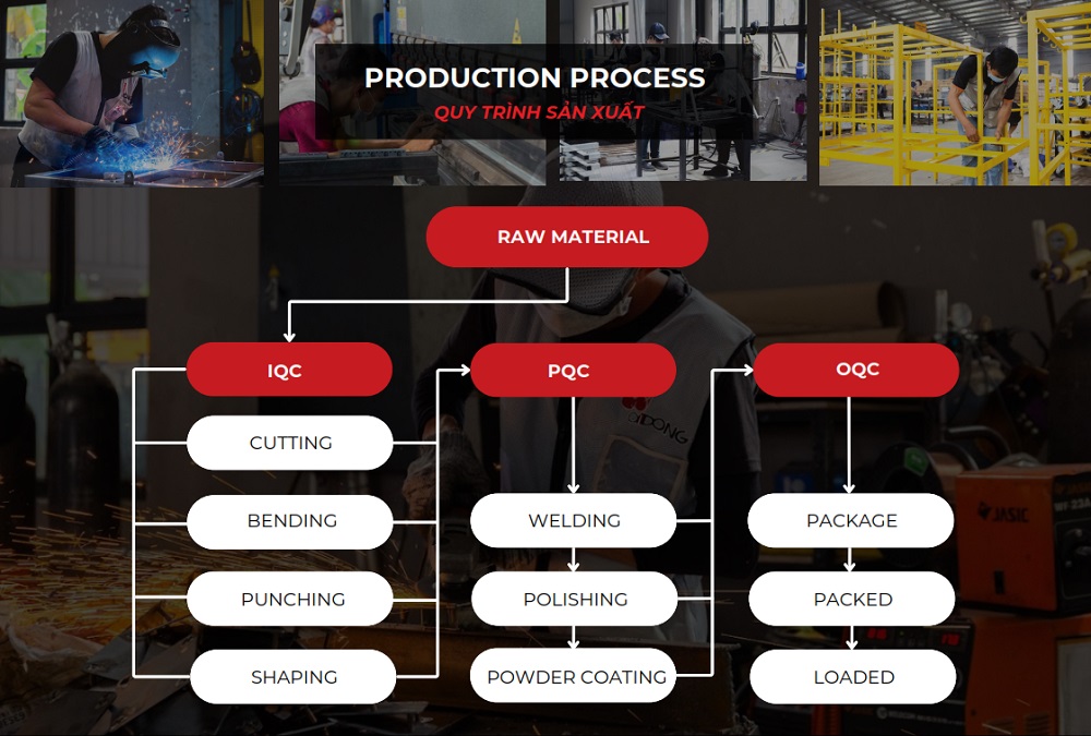 A Dong owns an ISO:9001 standard factory, an area of over 20,000m2 in Tam Phuoc industrial park, 1 hour away from Ho Chi Minh City, which is equipped with advanced machines, closed production lines to ensure strict quality control and meet shipping requirements.
