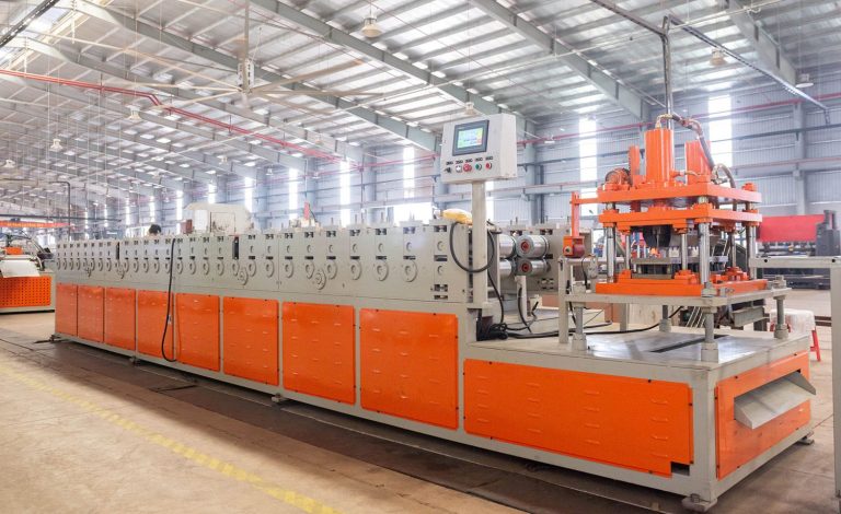 After the corrugated iron discharge process, the material will be put through a punching machine to punch holes in the corrugated iron sheets. This type of machine is operated through an advanced control system, capable of processing large-sized metal sheets.