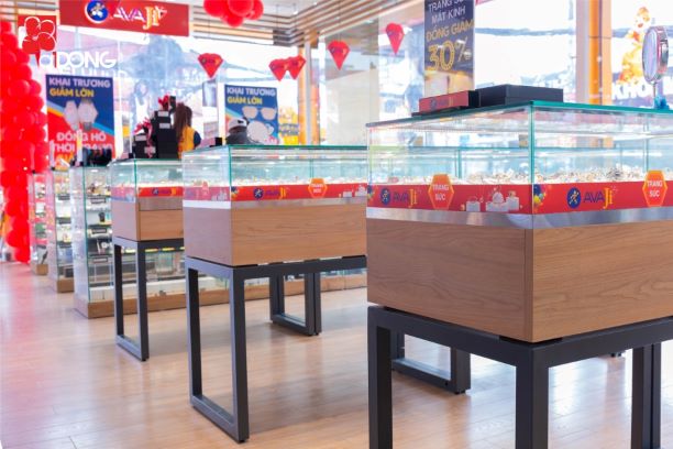Jewelry display cabinets that A Dong manufactured for Avaji jewelry store chain