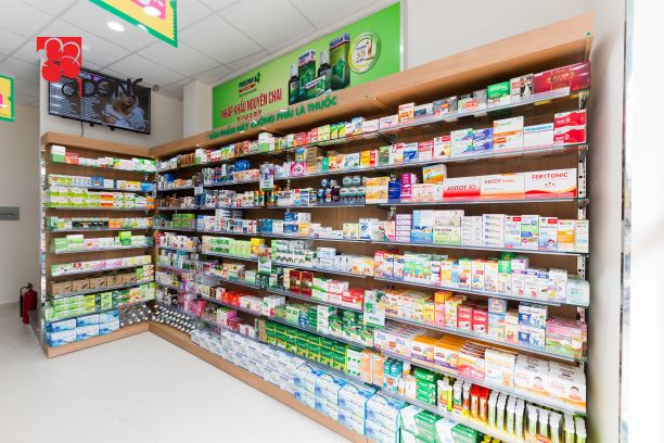 Drug display cabinet that A Dong manufactured for An Khang pharmacy chain.