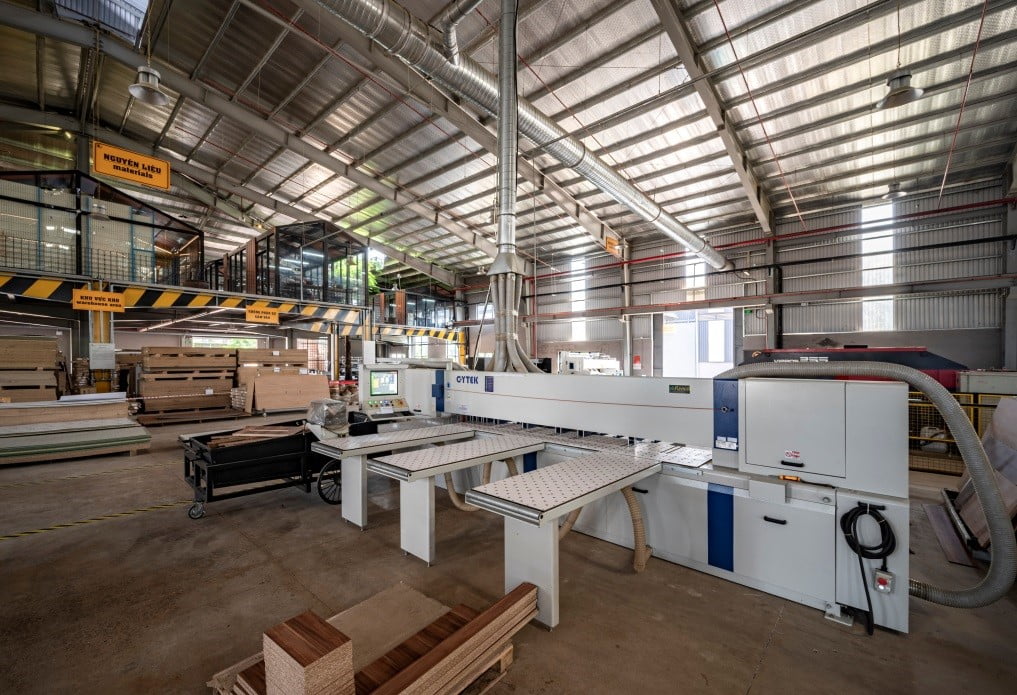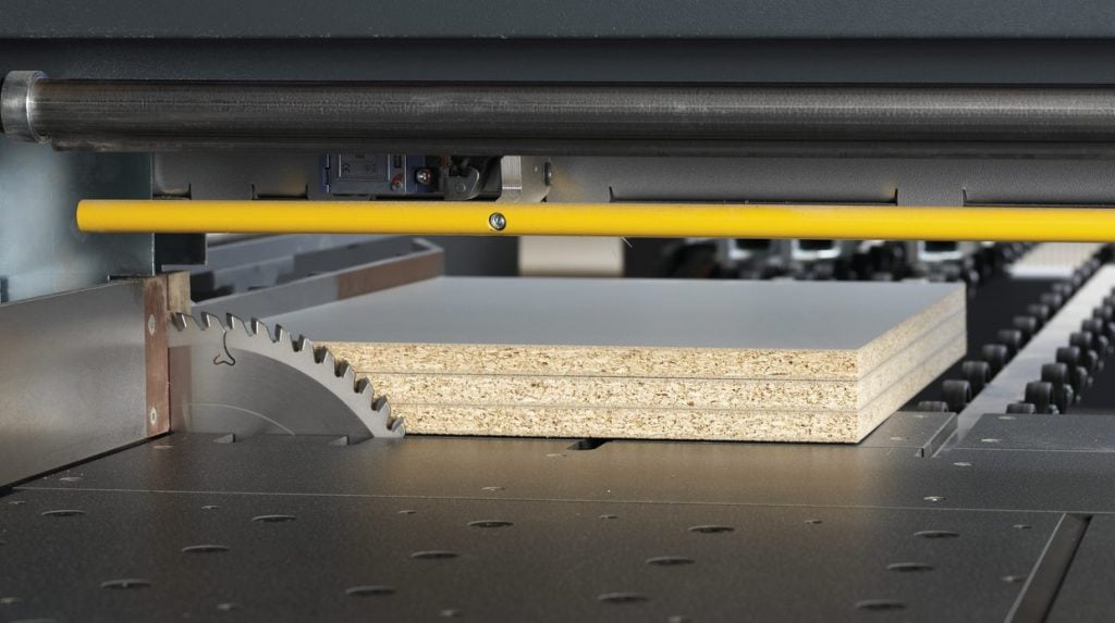 - The panel saw cuts precisely vertically when cutting them into the right-sized finished parts.