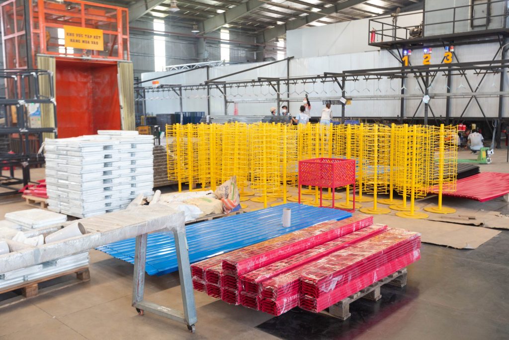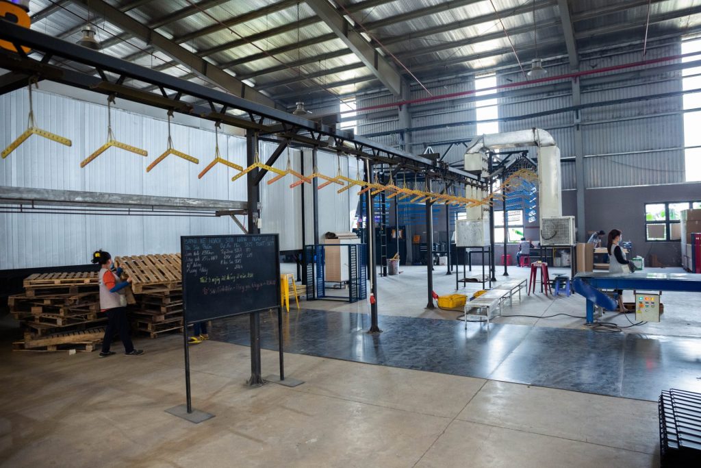 Powder coating line is an advanced technology line operating under a high voltage environment. The process of product painting is carried out by powder coating, dry paint, electrostatic powder gun, all fully automatic. With the powder coating line, the products are always guaranteed to be durable, long-lasting and less damaged.