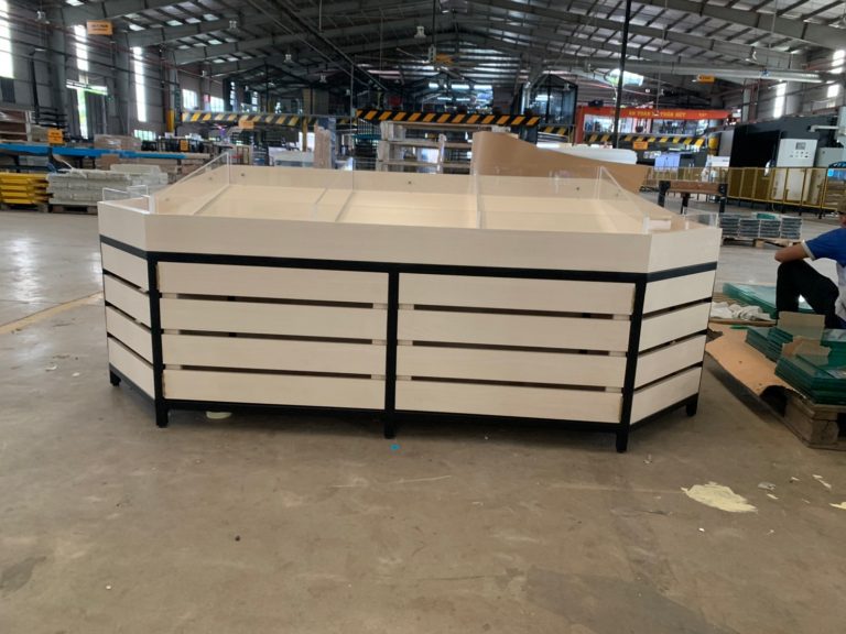 - We can produce supermarket shelves from basic materials such as iron, steel, stainless steel, and sheet metal, as well as high-end, luxurious display cabinets, and experiential product tables made from glass, wood, stone, and acrylic.