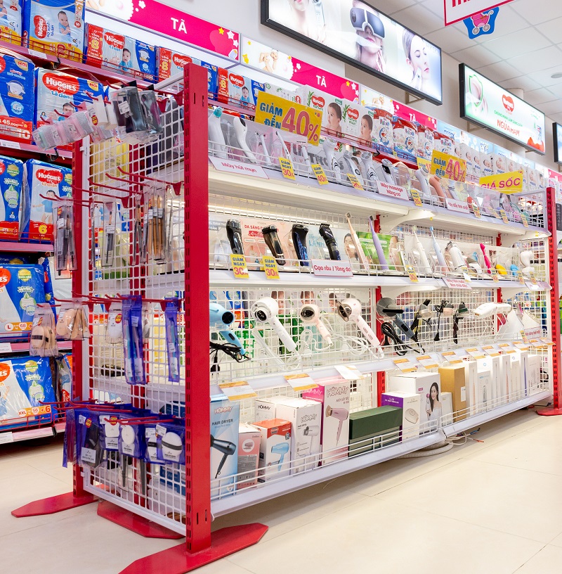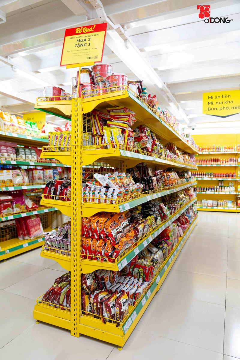 Currently, in order to increase market share, retail supermarket chains continuously expand their scale and business locations with uniformity in image, brand identity, and display space. With many years of experience in supplying supermarket shelves for Asian supermarket chains, we confidently provide various types of supermarket shelves, display props for supermarkets, commercial centers, mini supermarkets, convenience stores, sales points for MT, GT channels, etc. with diverse designs and sizes.