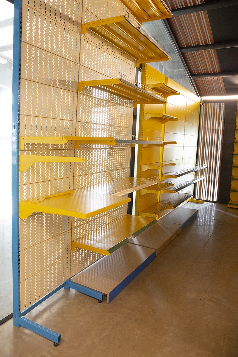 The design of the shelf with perforated back is made of tin sheets with decorative patterns that create a high aesthetic value. It is especially sturdy and durable, allowing supermarkets to display various types of products, suitable for all common consumer goods.
