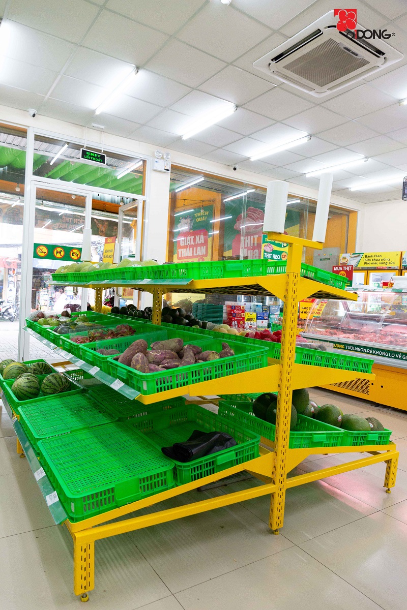 This is an essential type of shelf in supermarkets, specialized in storing fruits and vegetables. The prices for vegetable and fruit shelves in A Dong are as follows: